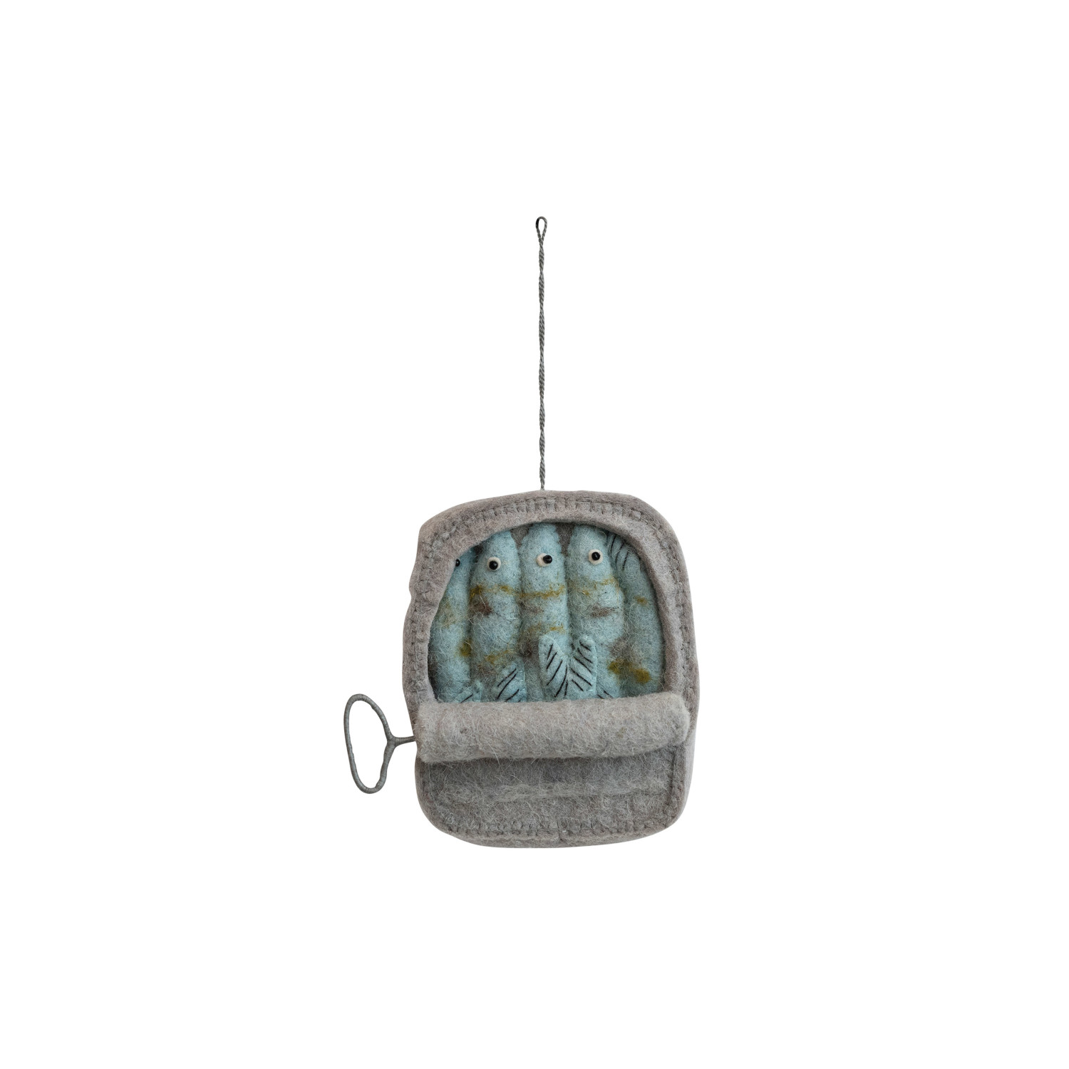 5"H Handmade Wool Felt Sardines in Can Ornament, Multi Color